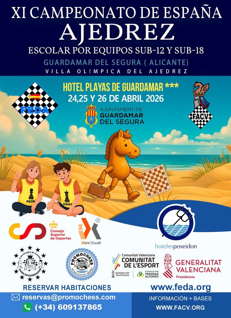 El sábado 25 se disputa en Torre Pacheco la V prueba del circuito Ajedrizate que consta de tres torneos paralelos según la edad de los jugadores.