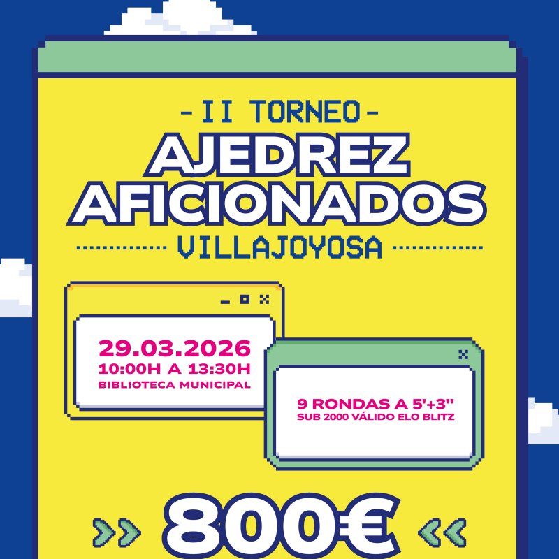 El domingo 28 de marzo se celebrará en Villajoyosa (Alicante) el II torneo para aficionados con 800 € en premios.