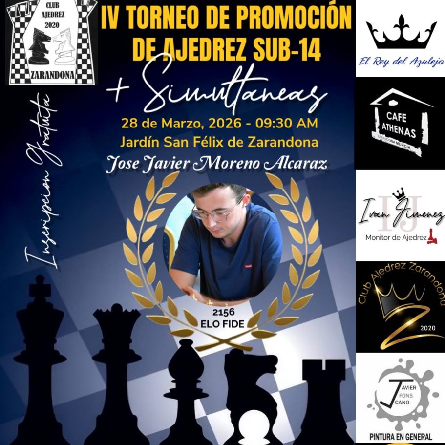 El sábado 28 se disputará el IV Torneo de Promoción Sub-14 organizado por el C.A. Zarandona. Al finalizar habrá una sesión de simultáneas impartidas por Pepe Moreno.